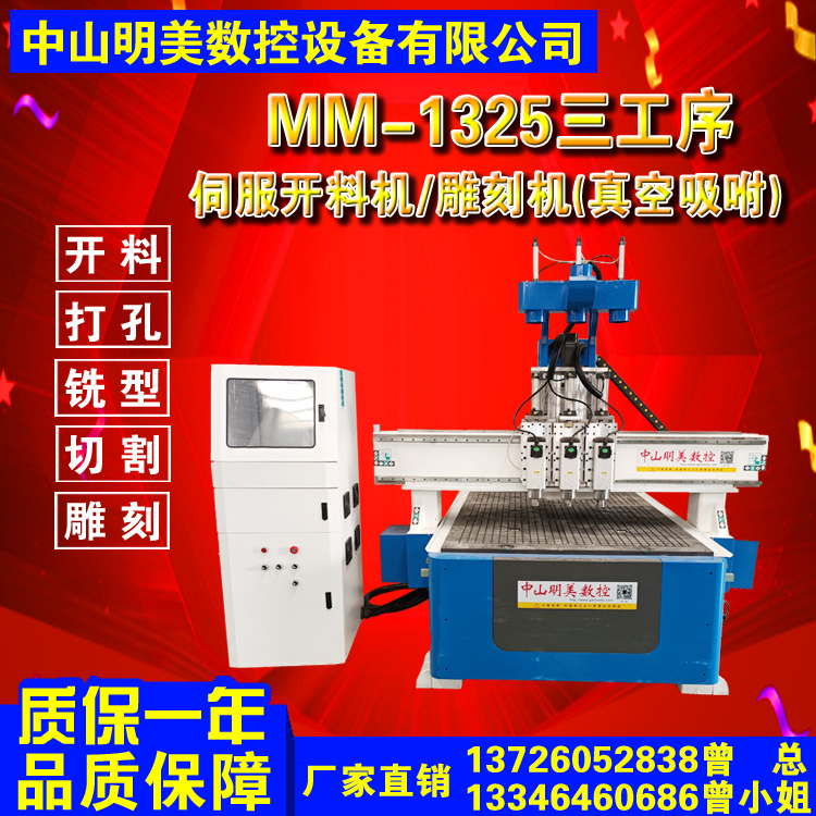 創(chuàng)新的設計及高精度的制造,使機床的性能比以前提高50%,高強度的鋼性結構。 2、三軸原裝進口導軌,絲杠,伺服電機,速度快效率高,是普通機器的3-5倍。 3、高速度變頻水冷主軸,配工業(yè)冷水機,扭矩大,轉速高,加工效率高,使用壽命長